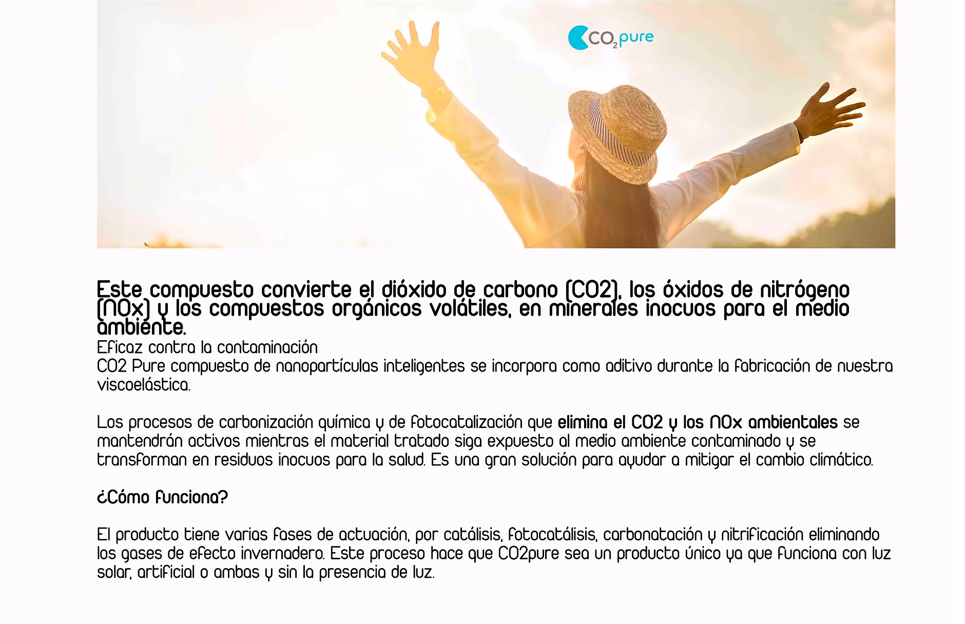 El núcleo de Viscoelástico de alta densidad asegura una correcta alineación del cuello y cervicales al descansar. Su núcleo está tratado con la nueva tecnología CO2Pure, que purifica el aire que respiramos.