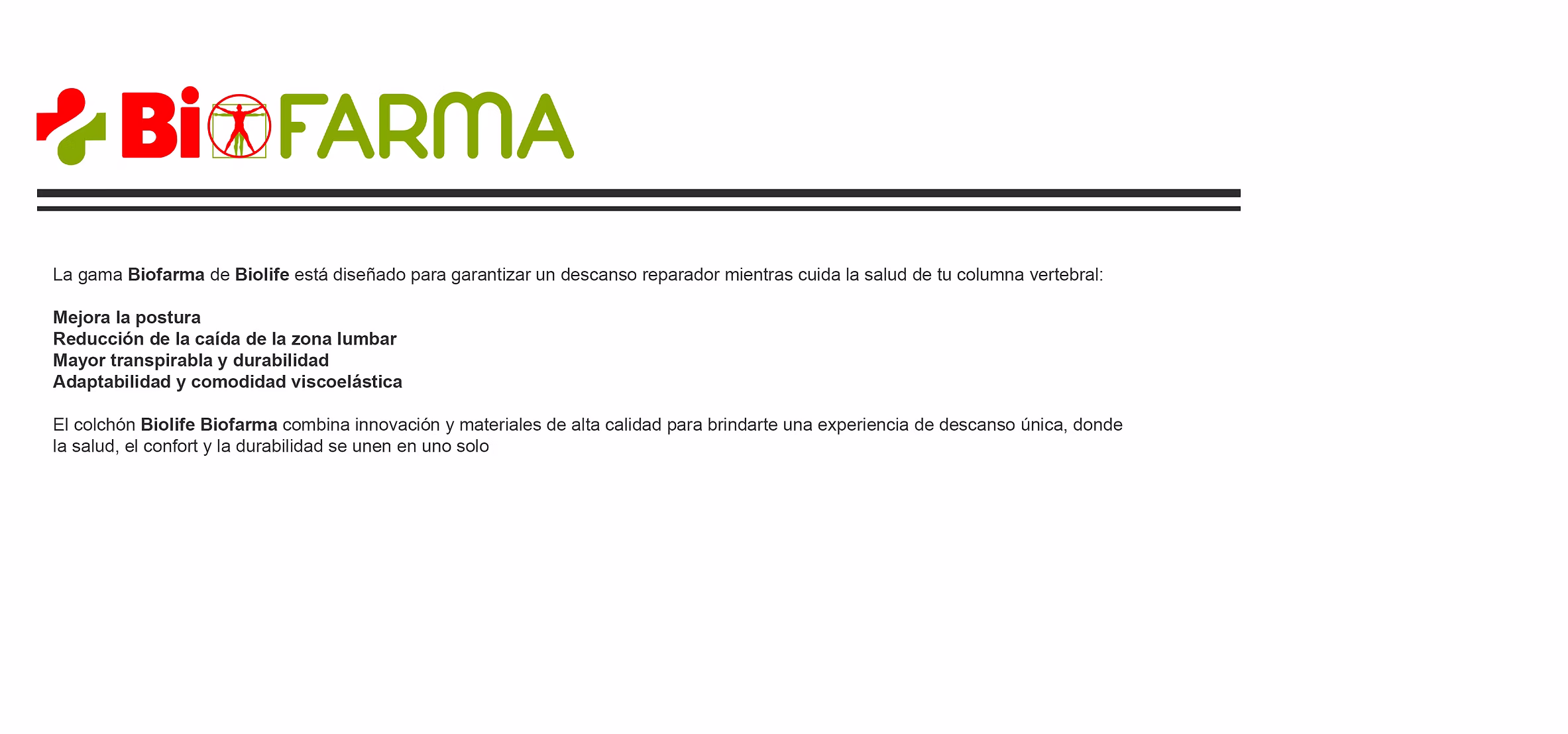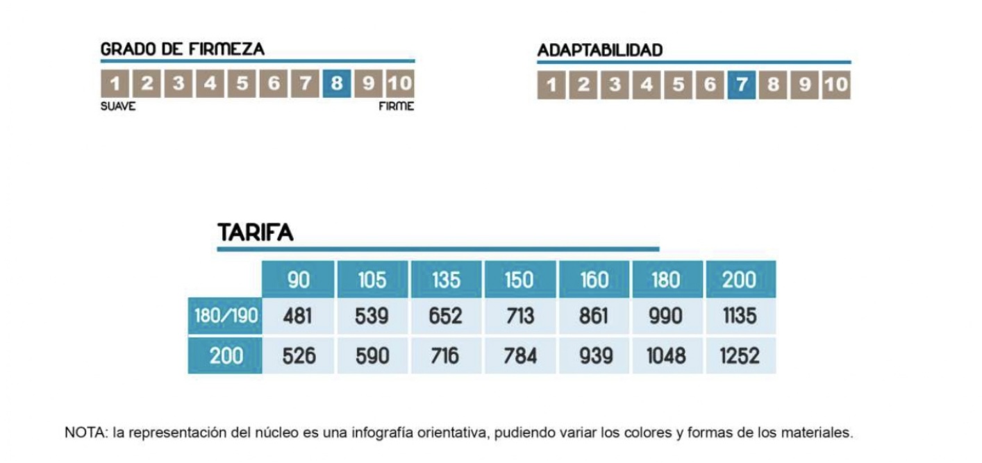 Los 5cm de biolástic 42k evitan un efecto “escalón” con el bloque principal, aportando una gran durabilidad y elasticidad. Doble capa de visco para una máxima adaptabilidad. La tela bayscent elimina cualquier tipo de bacteria.